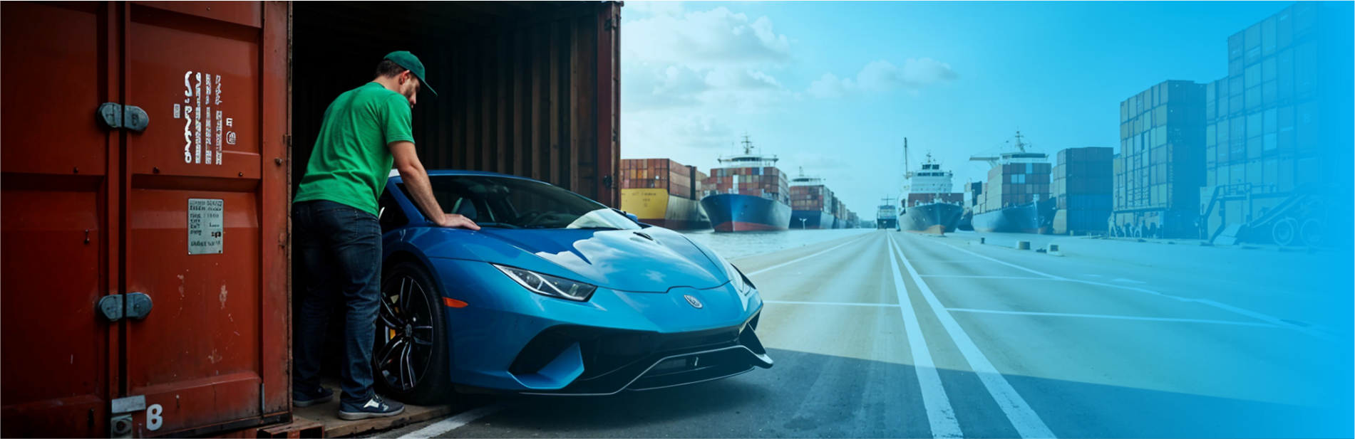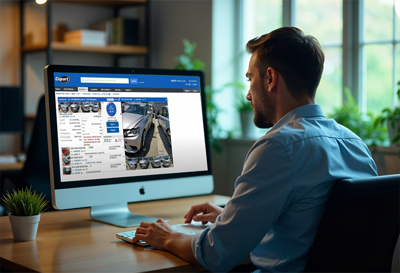 Participating in an auction and winning. Paying the local value of the vehicle, Insuring the vehicle from images, Creating a personal cabinet for transportation.